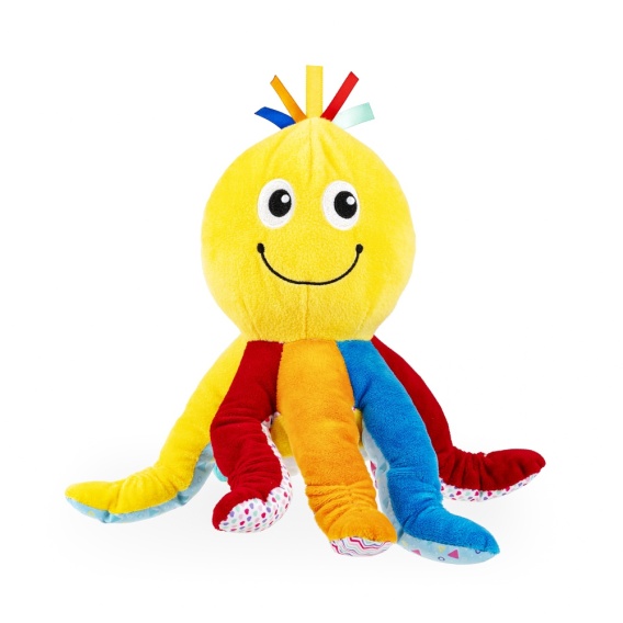 Podczas zabawy ośmiorniczka mówi po polsku, śpiewa wesołą piosenkę, wydaje zabawne odgłosy i uczy liczyć od 1 do 8. Jej kolorowe macki wykonano z różnorodnych materiałów, które stymulują zmysł dotyku dziecka.
